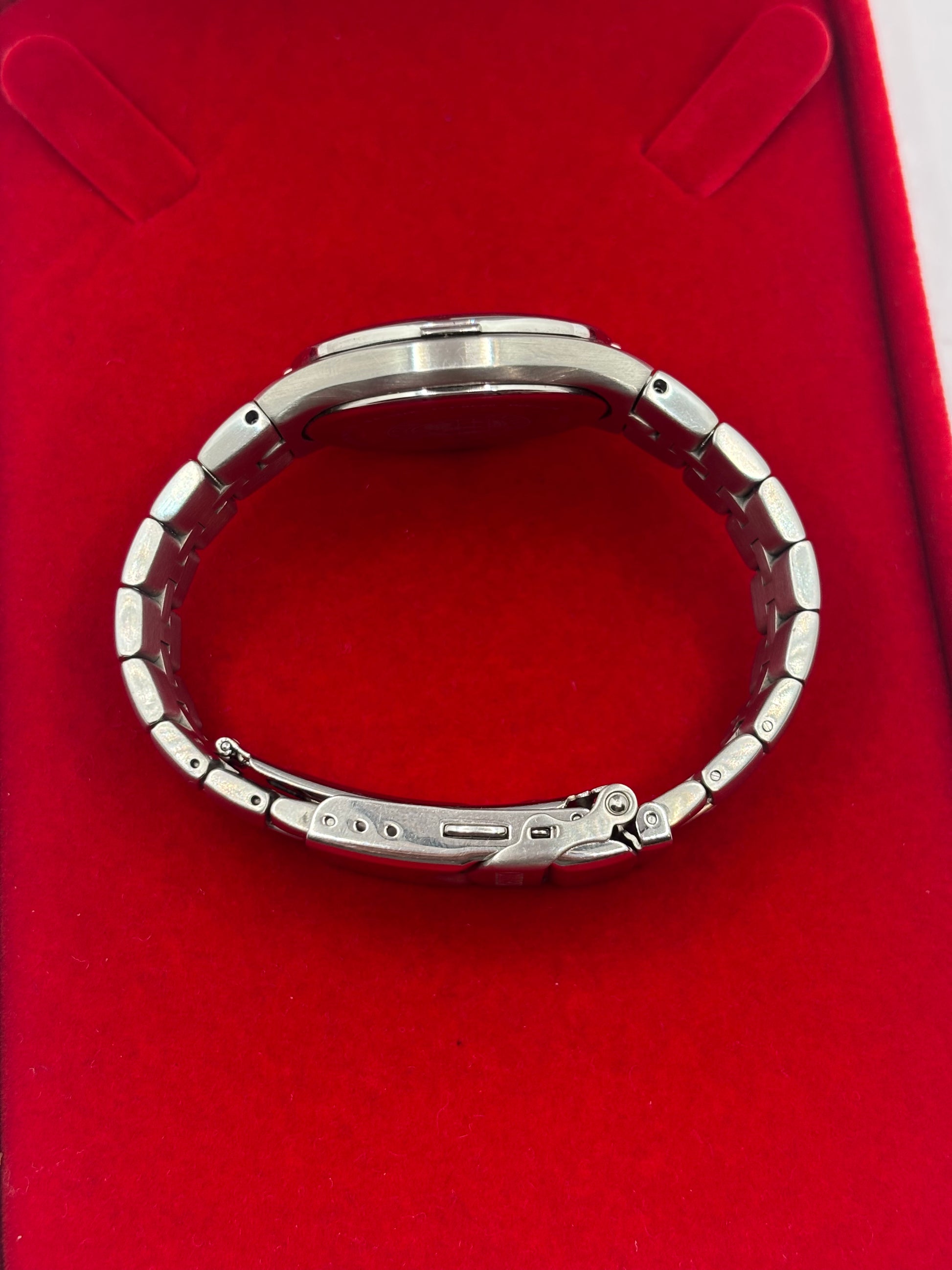 Pre-owned in good condition. Light surface wear on case and bracelet from regular use. Crystal is clean and clear. Watch is running smoothly and keeping time. No box or papers included.