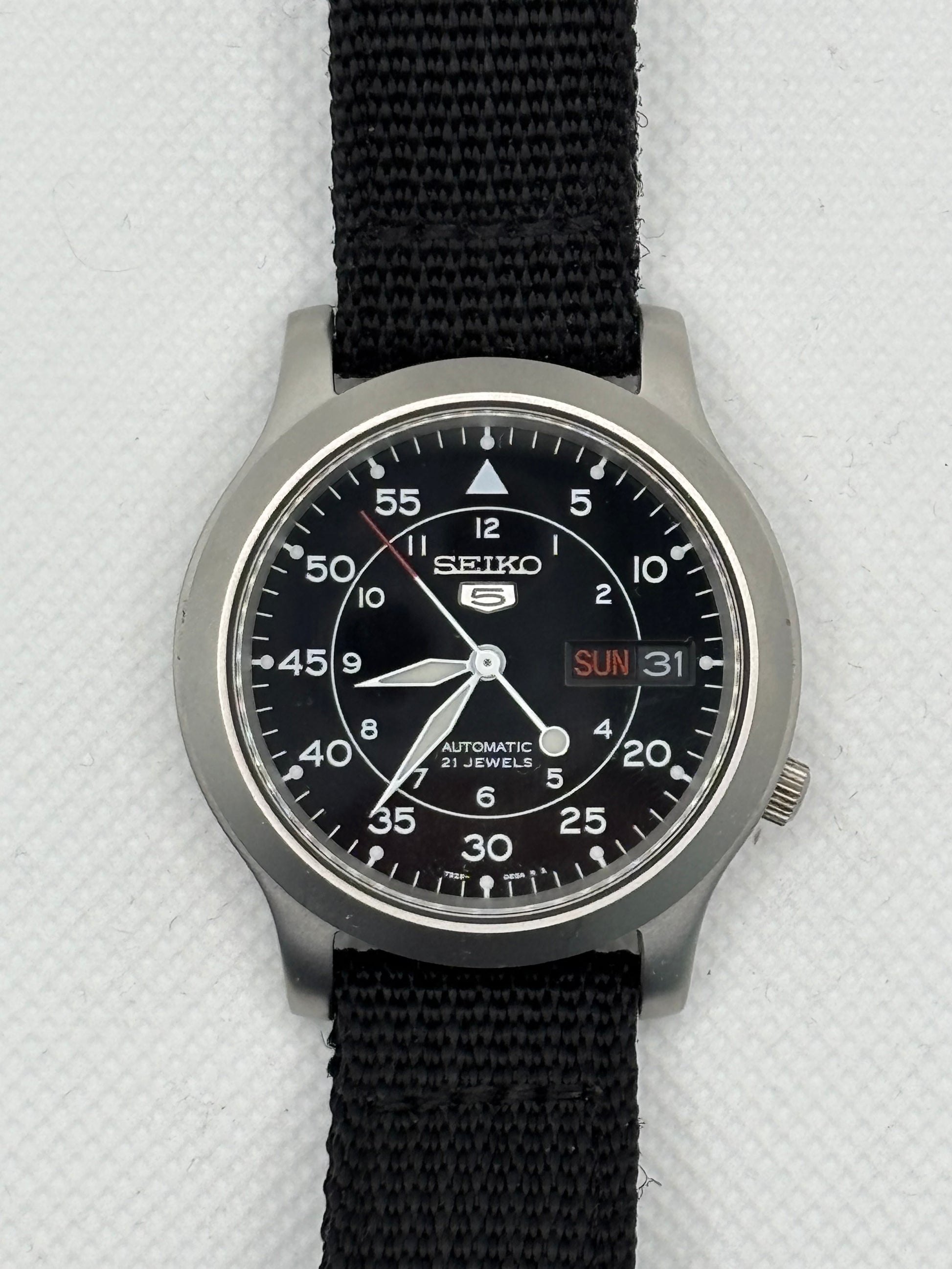 Please note, this Seiko 5 Field Watch is offered without the original box or papers. While it is a pre-owned piece, it remains in great condition and is ready to provide reliable service for years to come.